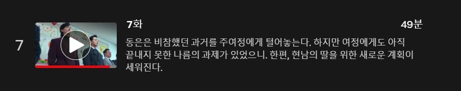 새하얀 눈 속에서 동은은 자신의 몸에 난 상처를 닦고 또 닦아 봤지만 그 상처들은 전혀 사라지지 않고 나아지지 않았으며 몸에 난 상처를 눈으로 닦다가 눈 속에 파묻혀 눈물을 흘리는 어린 동은 그런 동은을 살게 한 건 바로 가해자를 향한 복수심이었습니다. 자신을 괴롭히고 떵떵거리며 사는 일진 무리를 보며 저딴 인간들도 사는데 내가 왜 죽어? 라며 억울한 마음을 복수심으로 불태워갑니다.