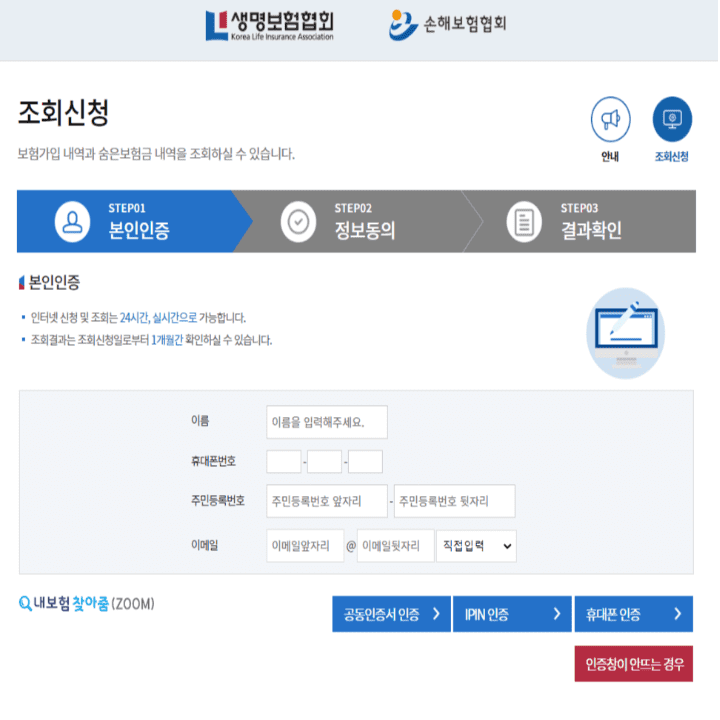 ↓ 숨은 보험금 조회하기 바로가기 클릭! ↓