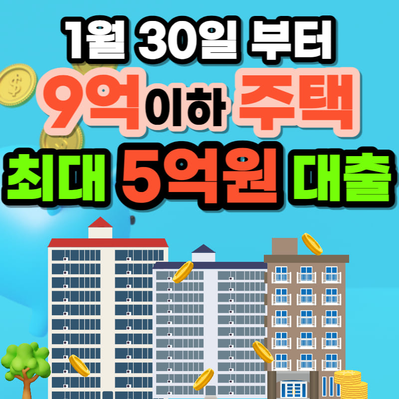 2023년 1월 30일부터 신청가능하며 9억이 넘지 않는 주택을 구입할 때 최대 5억까지 대출을 해주는 정부지원상품입니다. 특례보금자리론을 이용하게 된다면 9억 이하의 주택을 매매할 경우 소득 요건의 제한 없이 최대 5억까지 대출이 가능한 상품을 1년간 한시적으로 운영된다고 합니다.