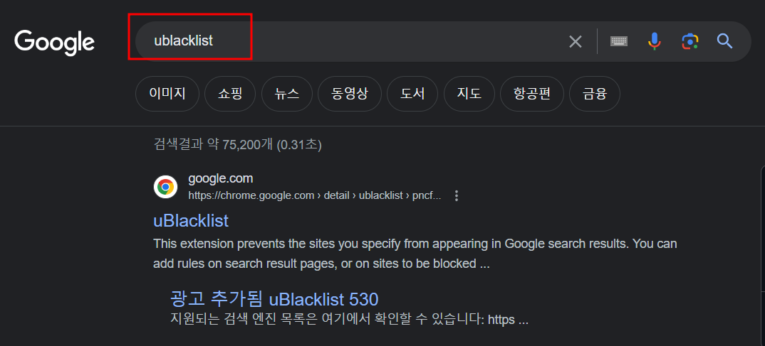 ublacklist 구글 크롬 사용자들을 위한 꿀팁
